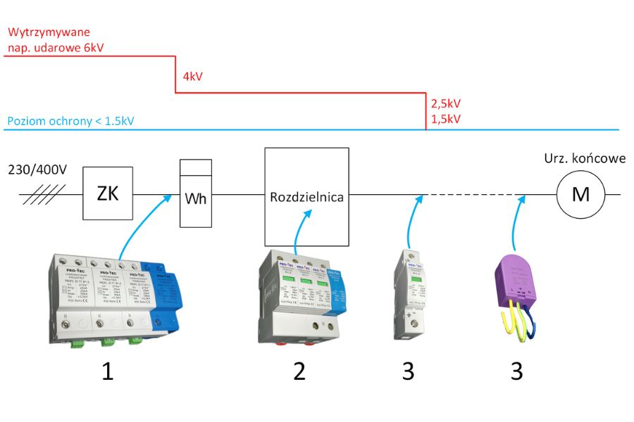 - Wyrównanie potencjałów i dwustopniowa ochrona przed przepięciami